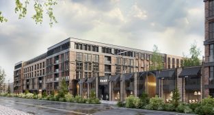 Экстерьер выполнен в английском промышленном стиле: фасады из керамического кирпича подчёркивают строгость и историю. Обилие стекла, вертикальные балки и арочные конструкции создают гармоничный современный облик.