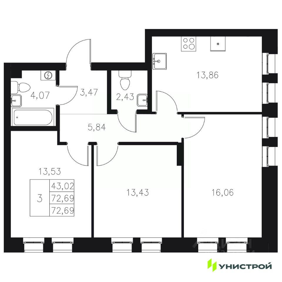 Общая площадь72,69 м²