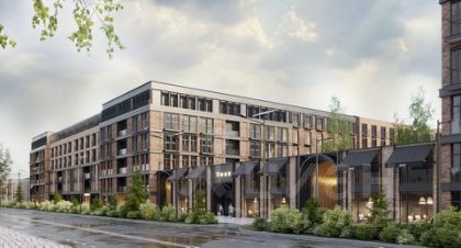 Экстерьер выполнен в английском промышленном стиле: фасады из керамического кирпича подчёркивают строгость и историю. Обилие стекла, вертикальные балки и арочные конструкции создают гармоничный современный облик.