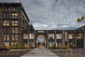 Экстерьер выполнен в английском промышленном стиле: фасады из керамического кирпича подчёркивают строгость и историю. Обилие стекла, вертикальные балки и арочные конструкции создают гармоничный современный облик.