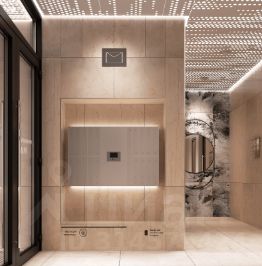 Входные группы "Статум" — это тёплая атмосфера и современный дизайн с природными оттенками: текстуры мрамора, акцентные вставки из стекла и металла, мягкий свет, бесшумные лифты в паркинг, вело- и колясочные. Единый стиль продолжается на этажах и лестницах.