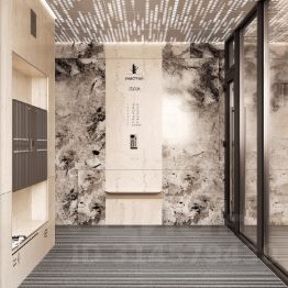 Входные группы "Статум" — это тёплая атмосфера и современный дизайн с природными оттенками: текстуры мрамора, акцентные вставки из стекла и металла, мягкий свет, бесшумные лифты в паркинг, вело- и колясочные. Единый стиль продолжается на этажах и лестницах.