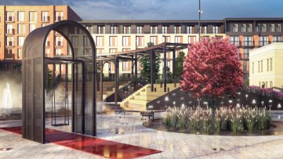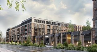 Экстерьер выполнен в английском промышленном стиле: фасады из керамического кирпича подчёркивают строгость и историю. Обилие стекла, вертикальные балки и арочные конструкции создают гармоничный современный облик.