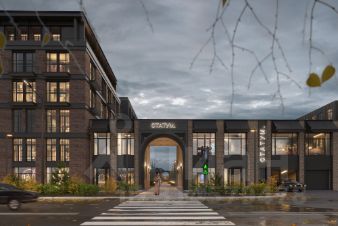 Экстерьер выполнен в английском промышленном стиле: фасады из керамического кирпича подчёркивают строгость и историю. Обилие стекла, вертикальные балки и арочные конструкции создают гармоничный современный облик.