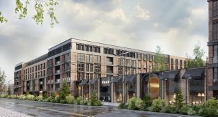 Экстерьер выполнен в английском промышленном стиле: фасады из керамического кирпича подчёркивают строгость и историю. Обилие стекла, вертикальные балки и арочные конструкции создают гармоничный современный облик.