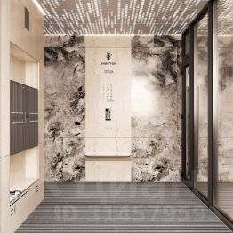 Входные группы "Статум" — это тёплая атмосфера и современный дизайн с природными оттенками: текстуры мрамора, акцентные вставки из стекла и металла, мягкий свет, бесшумные лифты в паркинг, вело- и колясочные. Единый стиль продолжается на этажах и лестницах.