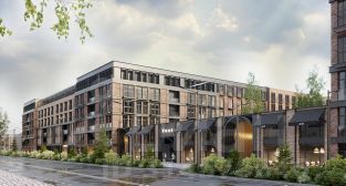 Экстерьер выполнен в английском промышленном стиле: фасады из керамического кирпича подчёркивают строгость и историю. Обилие стекла, вертикальные балки и арочные конструкции создают гармоничный современный облик.