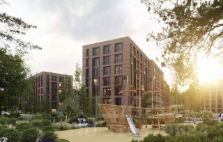 Экстерьер выполнен в английском промышленном стиле: фасады из керамического кирпича подчёркивают строгость и историю. Обилие стекла, вертикальные балки и арочные конструкции создают гармоничный современный облик.