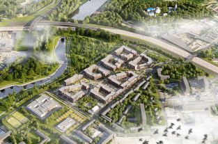 Экстерьер выполнен в английском промышленном стиле: фасады из керамического кирпича подчёркивают строгость и историю. Обилие стекла, вертикальные балки и арочные конструкции создают гармоничный современный облик.