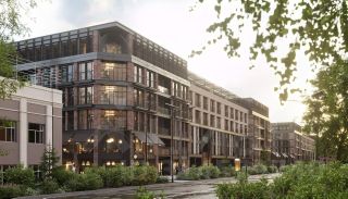 Экстерьер выполнен в английском промышленном стиле: фасады из керамического кирпича подчёркивают строгость и историю. Обилие стекла, вертикальные балки и арочные конструкции создают гармоничный современный облик.