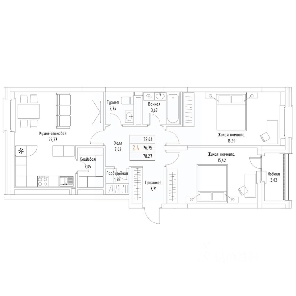 Общая площадь78,27 м²