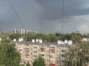 Окна во двор, на южную сторону, евро /финские, дерево, двойные рамы, стеклопакет. Балкон застеклен дерево, шкафчики с полками, пол - плитка.