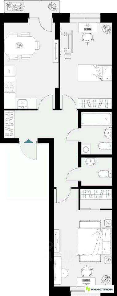 В проекте представлено разнообразие эргономичных и функциональных планировок от студий до 4-комнатных квартир и евроформатов. Квартиры со свободной планировкой, где вы сможете реализовать идеальное пространство жизни. На первом этаже квартиры обустроены террасами, которые не оставят никого равнодушными и привнесут в ваш быт эксклюзивный комфорт. На верхних этажах просторные балконы откроют панораму города. Вариант с гардеробной позволит оптимизировать пространство квартиры.