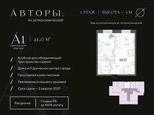 Продается 1-к квартира 3 в клубном доме "Авторы на Астрономической" в центре Казани, в шаге от канала Булак. Квартира на 2 этаже площадью 44,27 м², высотой потолков 3 м. Квартира сдается в свободной планировке, предоставляя полную свободу для ваших предпочтений в дизайне и возможность подстроить пространство под ваши жизненные ценности.