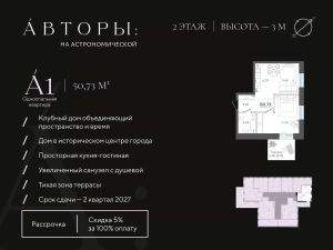 Продается 1-к квартира 6 в клубном доме "Авторы на Астрономической" в центре Казани, в шаге от канала Булак. Квартира на 2 этаже площадью 44,89 м², высотой потолков 3 м. Квартира сдается в свободной планировке, предоставляя полную свободу для ваших предпочтений в дизайне и возможность подстроить пространство под ваши жизненные ценности.
