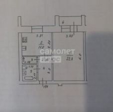Общая площадь квартиры 47 м2. Гостиная 22м2, Кухня 11.5м2.