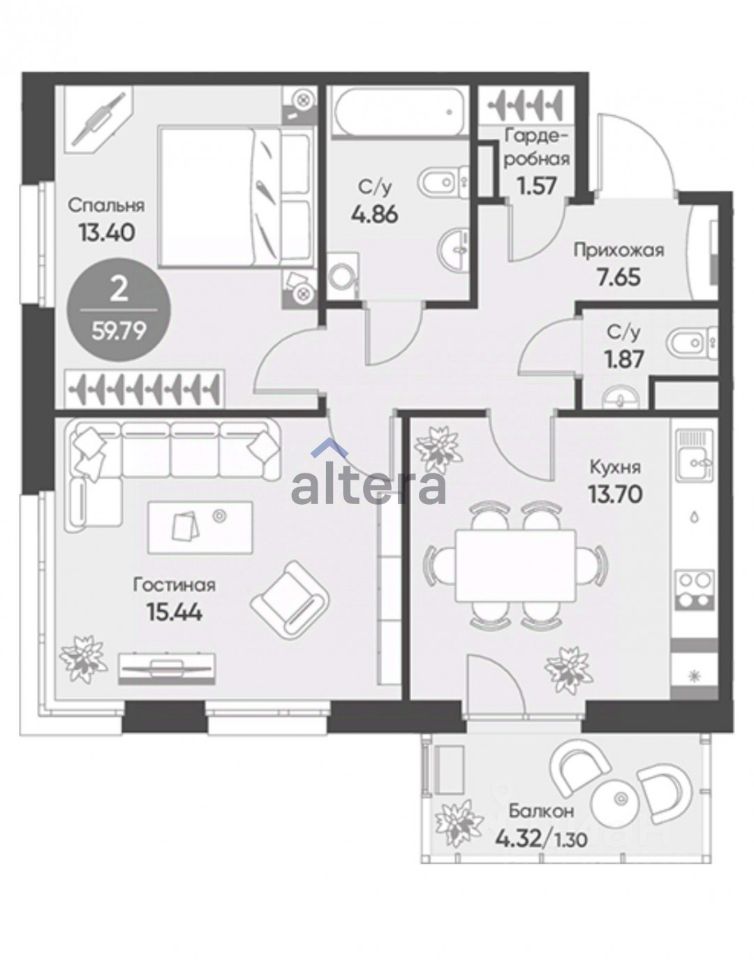 Арт. 99947361 Продается просторная 2-х комнатная квартира площадью 59,79 кв м на 3 этаже 19-ти этажного дома в ЖК бизнес-клaсcа "Счастье в Казани". Расположена на ул. Гаврилова в Нoво-Савинoвcкoм paйoнe Kазани.