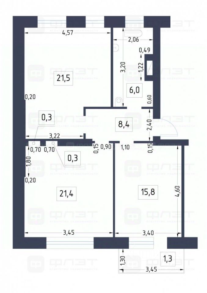 * Две изолированные жилые комнаты (15,8 кв.м и 21,4 кв.м) с выходом на застекленный балкон каждому члену семьи найдется свое уютное пространство.