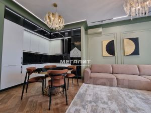 Просторная, наполненная светом гостиная, большая кухня-столовая, две вместительных гардеробных комнаты и два великолепных санузла. Рабочий кабинет и уютная спальная комната выполнена в спокойных тонах, что создает атмосферу отдыха и комфорта.
