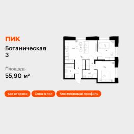 Продаётся 2-комн. квартира площадью 55,9 кв.м на 12 этаже 15 этажного дома (Корпус 2, Секция 9) проекта ПИК Ботаническая 3. Светлый просторный подъезд на уровне земли, функциональная планировка, большие окна, без отделки.