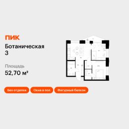Продаётся 2-комн. квартира площадью 52,7 кв.м на 7 этаже 15 этажного дома (Корпус 2, Секция 9) проекта ПИК Ботаническая 3. Светлый просторный подъезд на уровне земли, функциональная планировка, большие окна, без отделки.