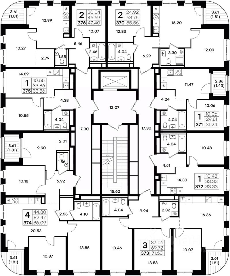 Продается 4-комн. квартира на 4-м этаже в строящемся проекте GloraX Экосити. Общая площадь лота составляет 86,09 кв. м, из которых 44,80 кв. м отведено под жилую и 20,53 кв. м под кухонную зону. Номер квартиры - 374
