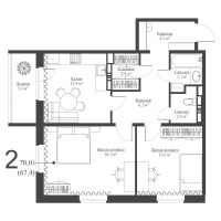 Продаётся 2-комнатная квартира в строящемся доме (Дом 1), срок сдачи: I-кв. 2027, общей площадью 67.8 кв.м., на 17 этаже. Новый жилой комплекс "Акварели на ВЫСОТЕ" от застройщика "Шаги к успеху" расположен по адресу: Республика Татарстан, Зеленодольск, микрорайон Мирный