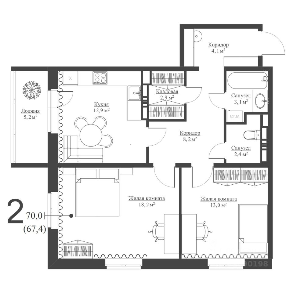 Продаётся 2-комнатная квартира в строящемся доме (Дом 1), срок сдачи: I-кв. 2027, общей площадью 67.8 кв.м., на 7 этаже. Новый жилой комплекс "Акварели на ВЫСОТЕ" от застройщика "Шаги к успеху" расположен по адресу: Республика Татарстан, Зеленодольск, микрорайон Мирный