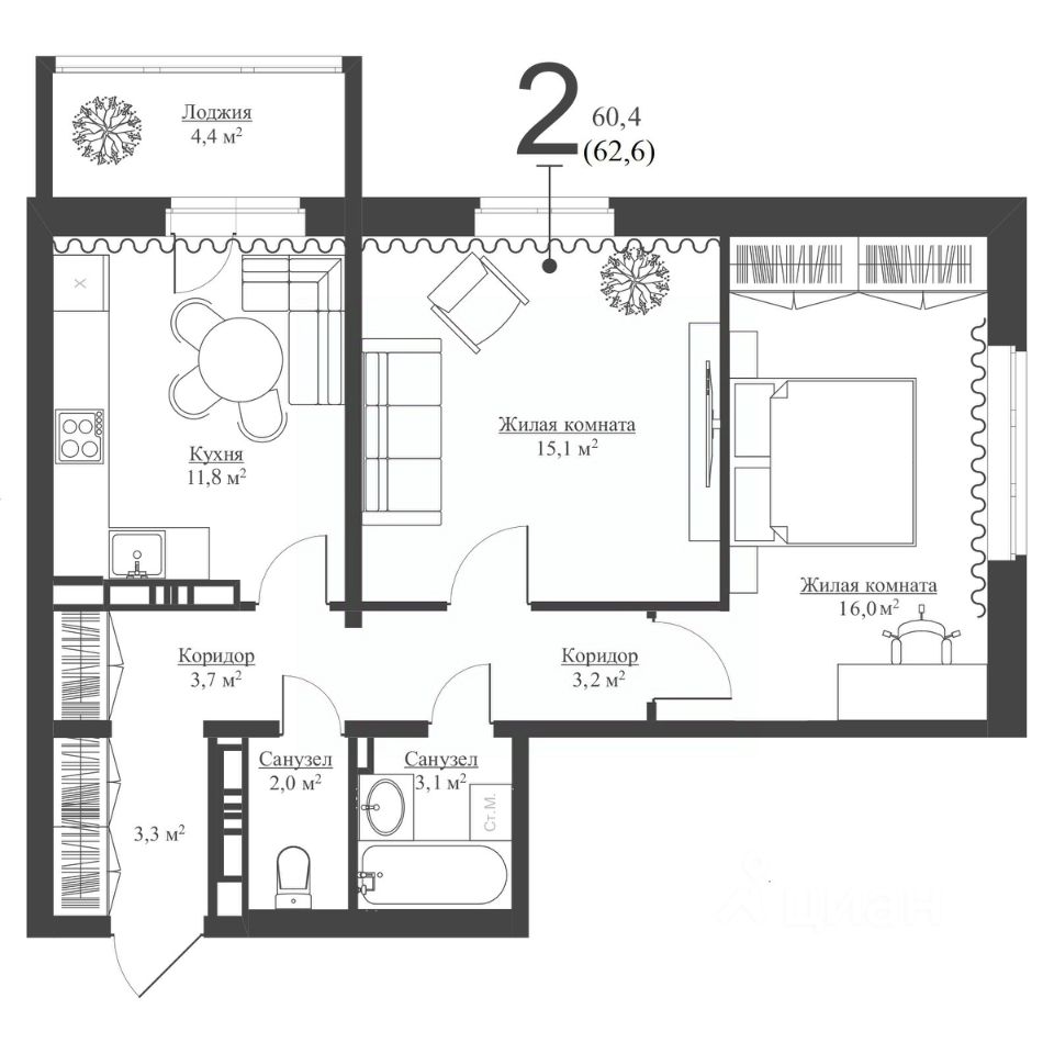 Продаётся 2-комнатная квартира в строящемся доме (Дом 1), срок сдачи: I-кв. 2027, общей площадью 60.8 кв.м., на 9 этаже. Новый жилой комплекс "Акварели на ВЫСОТЕ" от застройщика "Шаги к успеху" расположен по адресу: Республика Татарстан, Зеленодольск, микрорайон Мирный