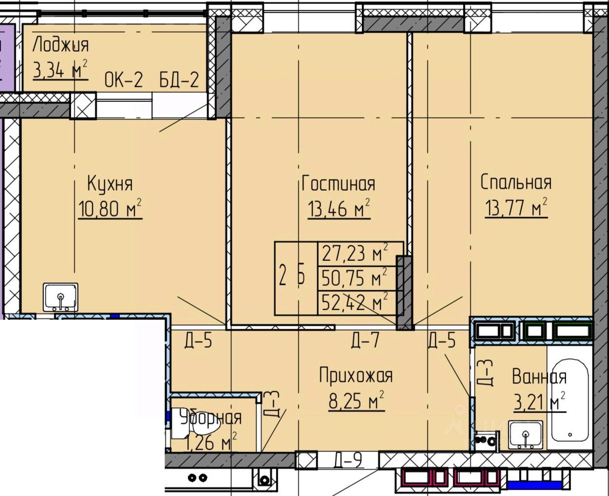 Продаётся 2-комнатная квартира в строящемся доме (Дом 12), срок сдачи: IV-кв. 2026, общей площадью 52.42 кв.м., на 2 этаже.