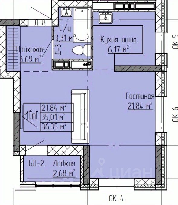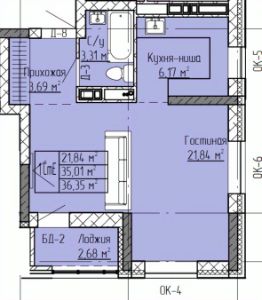 Студия, 36,35 м²
