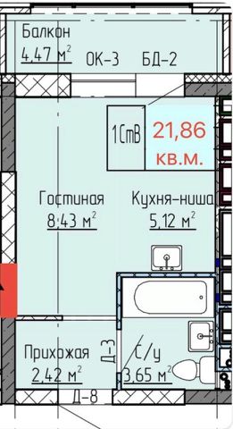 Студия, 21,86 м²