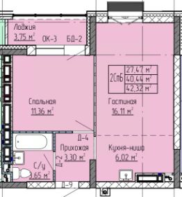 Продаётся 2-комнатная квартира в строящемся доме (Дом 12), срок сдачи: IV-кв. 2026, общей площадью 42.32 кв.м., на 17 этаже.
