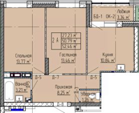 Продаётся 2-комнатная квартира в строящемся доме (Дом 12), срок сдачи: IV-кв. 2026, общей площадью 52.46 кв.м., на 18 этаже.