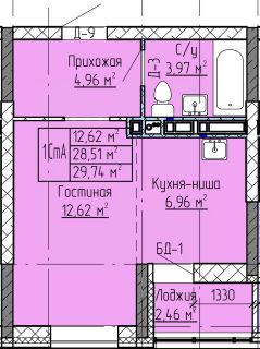 Продаётся студия в строящемся доме (Дом 12), срок сдачи: IV-кв. 2026, общей площадью 29.74 кв.м., на 19 этаже.