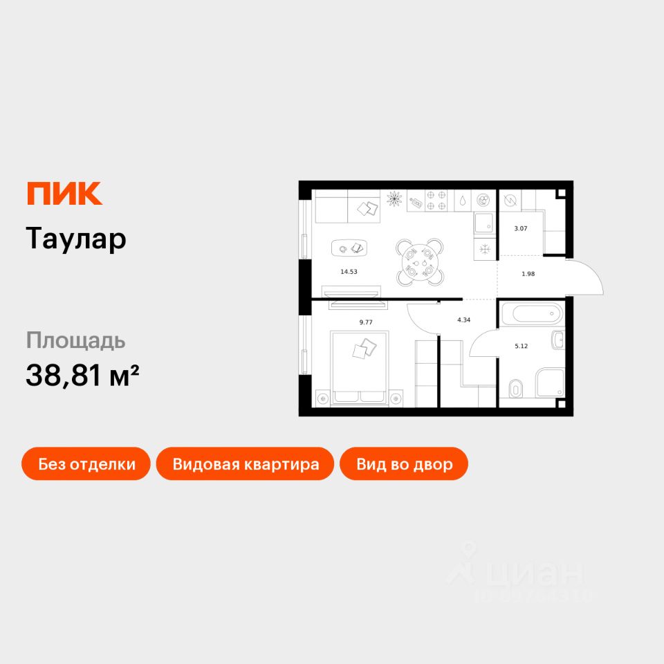Продаётся 1-комн. квартира площадью 38,81 кв.м на 9 этаже 24 этажного дома (Корпус 1, Секция 1) проекта ПИК Таулар. Светлый просторный подъезд на уровне земли, функциональная планировка, большие окна, без отделки.