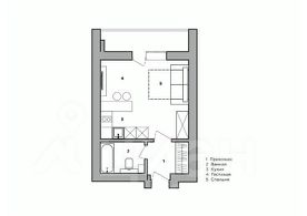 *Просторная зона-студия* с продуманным зонированием: кухонный уголок с техникой, уютная гостиная и удобная спальная зона.
