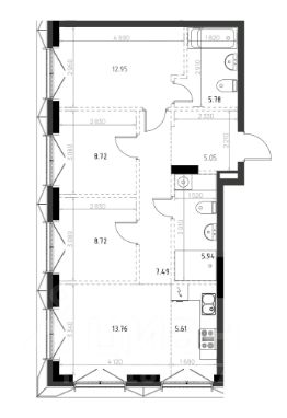 Квартира площадью 74,02 м² со свободной планировкой, панорамные окна с видом на Волгу (сллнечная сторона), высокие потолки, централизованная система кондиционирования, многоуровневая система очистки воды, мастер спальня.