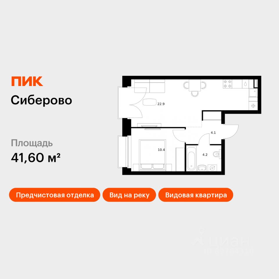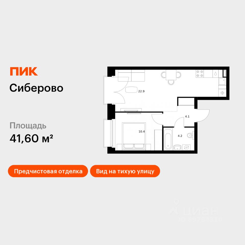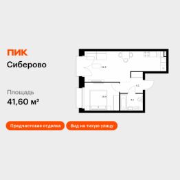 Продаётся 1-комн. квартира площадью 41,6 кв.м на 10 этаже 14 этажного дома (Корпус 2, Секция 4) проекта ПИК Сиберово. Светлый просторный подъезд на уровне земли, функциональная планировка, большие окна, предчистовая отделка.
