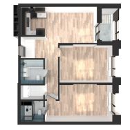 Две отдельные комнаты позволят предусмотреть личное пространство для всех домочадцев, а мастер-спальня с собственным санузлом добавит в вашу жизнь особенный комфорт.