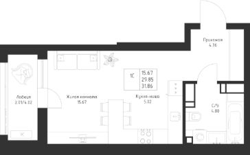 Продается квартира-студия 295 площадью 31,86 кв.м на 6 этаже в строящемся проекта "Мой Ритм" компании "Ак Барс Дом".