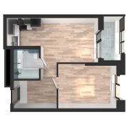 Комфортная 1-комнатная квартира с просторной евро-кухней и отдельной спальней. Площадь комнаты позволяет разместить не только удобную двуспальную кровать, но и шкафы для хранения вещей. При входе достаточно места, чтобы обустроить свой гардероб.