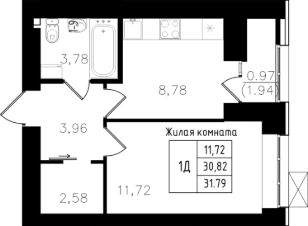 Продается 1 комнатная квартира 161 общей площадью: 31.79 кв.м. на 1 этаже.