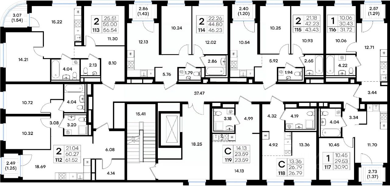 Продается 2-комн. квартира на 8-м этаже в строящемся проекте GloraX Экосити. Общая площадь лота составляет 56,54 кв. м, из которых 25,51 кв. м отведено под жилую и 15,22 кв. м под кухонную зону. Номер квартиры - 113