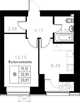 Продается 1 комнатная квартира 133 общей площадью: 33.07 кв.м. на 4 этаже.