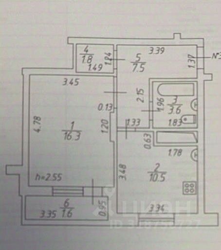 Общая площадь квартиры составляет 41,3 кв. м, из которых 16,3 кв. м - жилая площадь, а 10,5 кв. м - кухня.