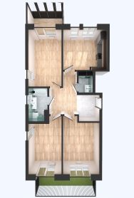 В проекте 3 комнаты для личного пространства домочадцев. Окна выходят на разные стороны дома, благодаря чему в помещениях будет больше света. В прихожей есть место для шкафа-купе, где будет удобно хранить все свои вещи.