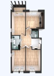 В проекте 3 комнаты для личного пространства домочадцев. Окна выходят на разные стороны дома, благодаря чему в помещениях будет больше света. В прихожей есть место для шкафа-купе, где будет удобно хранить все свои вещи.
