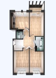 В проекте 3 комнаты для личного пространства домочадцев. Окна выходят на разные стороны дома, благодаря чему в помещениях будет больше света. В прихожей есть место для шкафа-купе, где будет удобно хранить все свои вещи.