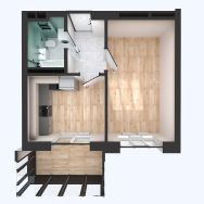 Площадь комнаты позволяет зонировать ее на спальную и гостевую зоны. В проекте функциональная прихожая, чтобы вам было удобно хранить свои вещи.